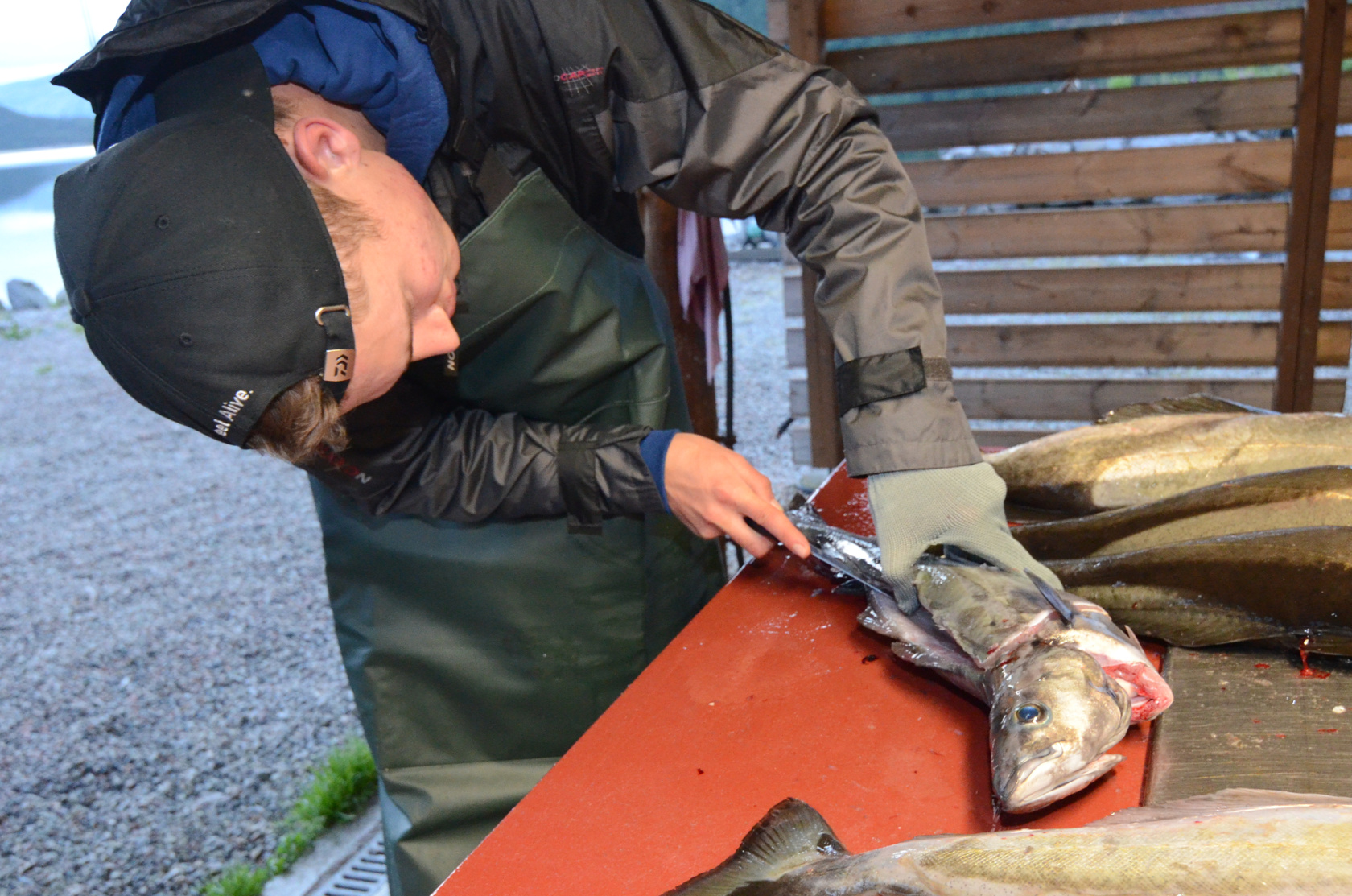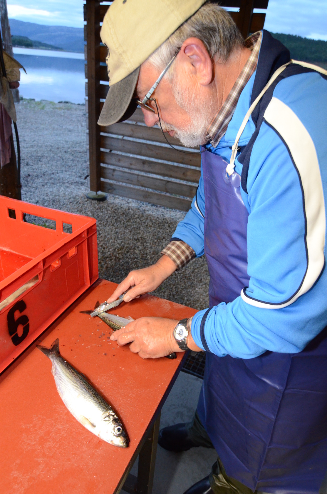 Yannik und Wolli hatten noch eine Stück Arbeit vor sich und waren um 5:30 Uhr mit dem Filetieren fertig.
