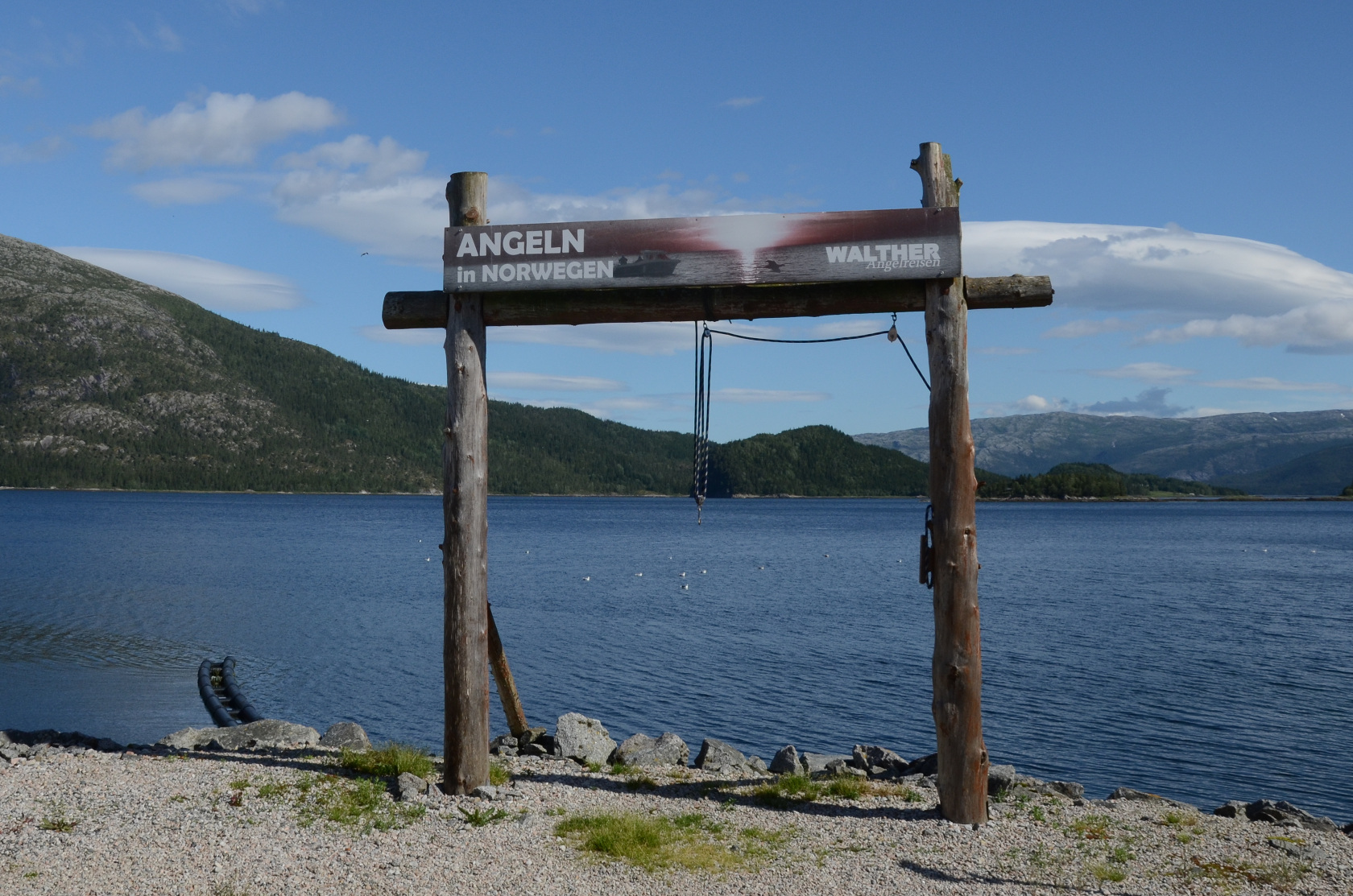 Die Übergabe des Bootes „Jule“ verlief problemlos, die Kaution wurde hinterlassen und wir konnten uns unserer Ausrüstung widmen. Niedrigwasser war laut Tidetabelle des nahe gelegenen Rørvik um 20:22 Uhr. Etwa zwei Stunden vor dem Niedrigwasser wollten wir raus fahren, bis dahin hatten wir Zeit unser Equipment zu ordnen. Ich hatte eine Rute mitgebracht und montierte meinen Köder an die Angelschnur. Natürlich ließ ich das alles von den Experten kontrollieren. Dietmar hat eine weitere Rute für mich mitgebracht, die ich auch vorbereitete. Ich bastelte noch an diesen Blog hier und gegen 17 Uhr ging es bei herrlichen Wetter raus.