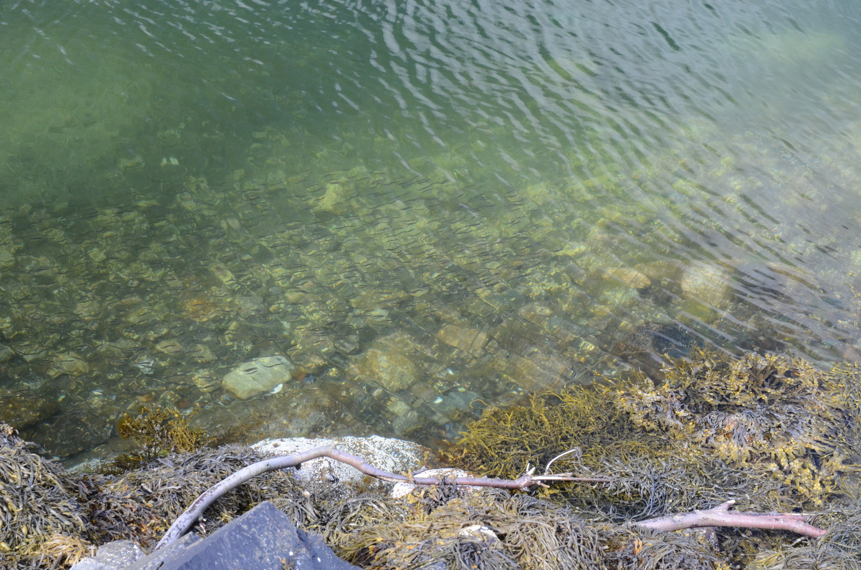 Fischschwärme kleiner Fische in Ufernähe