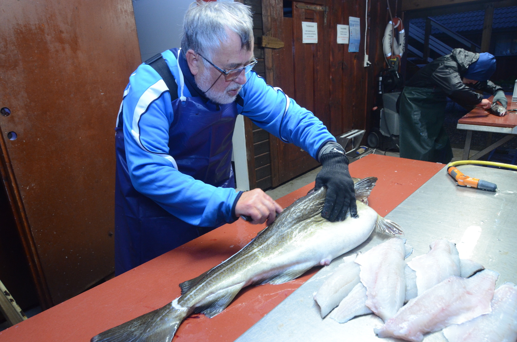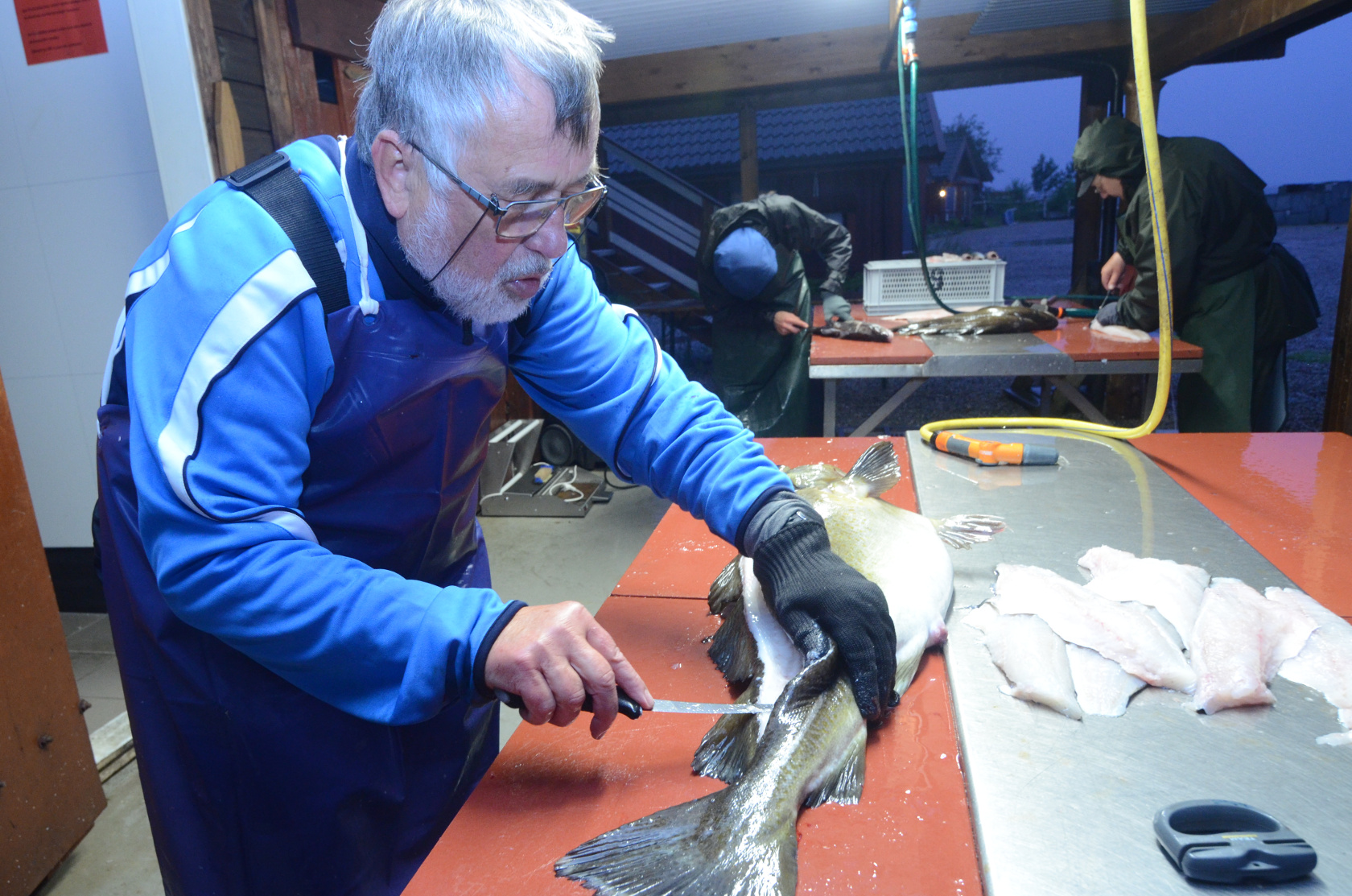 Mit Schürze und Messer bewaffnet, sind Yannik und Wolli fürs Filetieren bereit.
