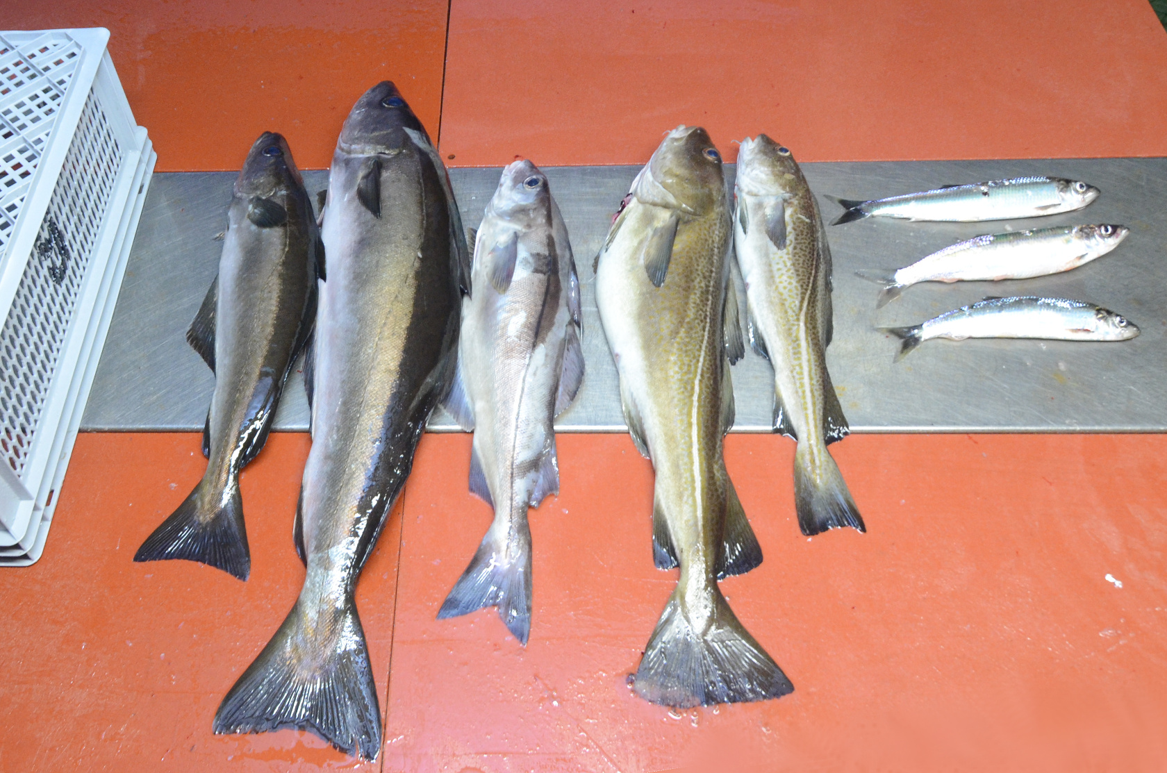 Zwei Pollacks, einen Schellfisch, zwei Dorsche und drei Heringe - der Fang von Yannik und Wolli.