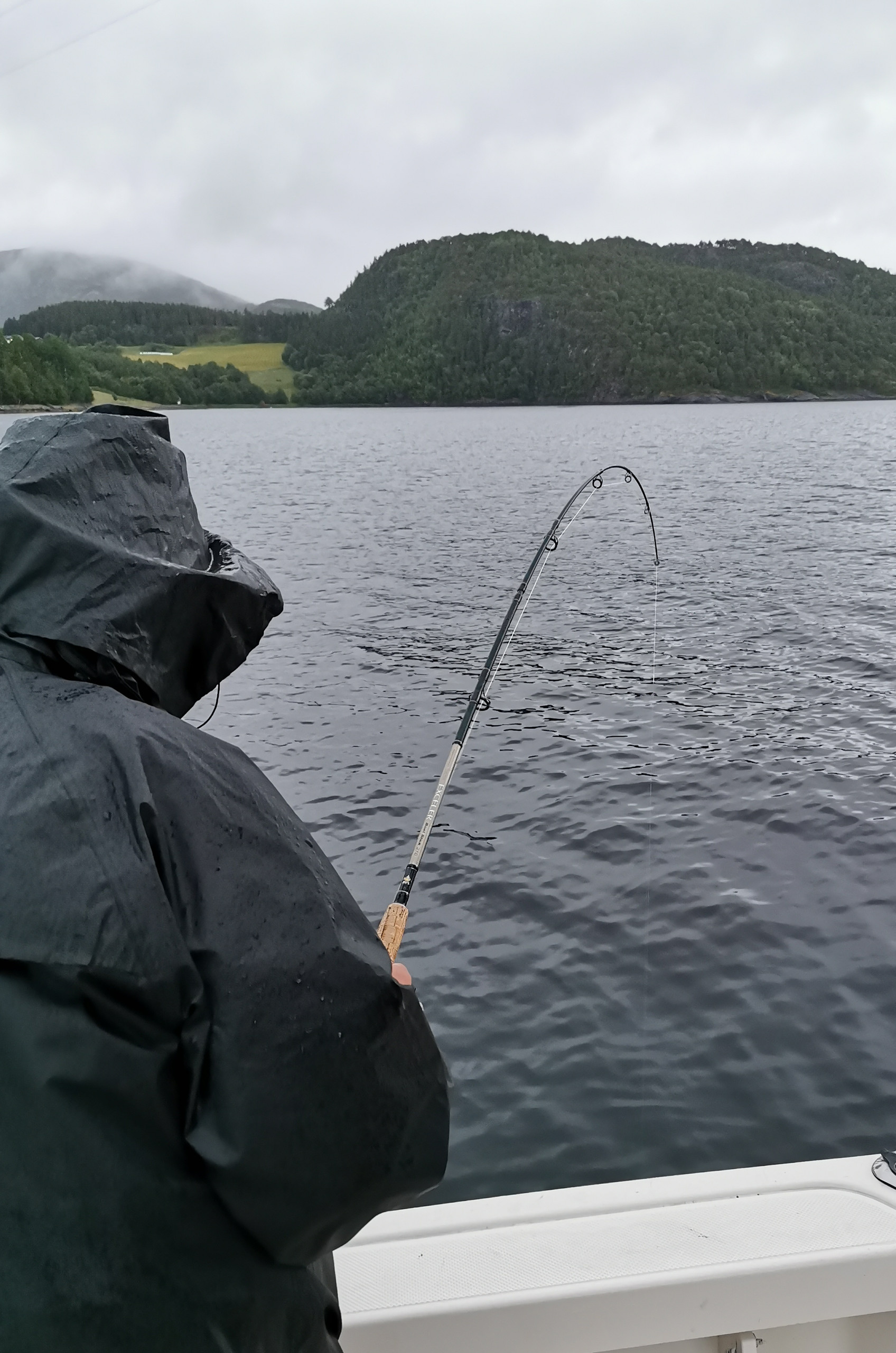 Der Angeltörn heute war für mich nicht erfolgreich. Bei den Wind- und Strömungsverhältnissen hatte ich meine Schwierigkeiten. Einige Seelachse am Haken, aber keiner 50 Zentimeter lang, landeten nicht in der Kiste, sondern wieder im Fjord. Dietmar fing einen kapitalen Dorsch von einem Meter Länge. Zum Abschluss wollten wir noch unsere Angel an unserer Herzinsel auswerfen. Am ersten Tag hatte Wolli und Yannik hier großen Erfolg. Der Wellengang an dieser Angelstelle veranlasste uns heute aber zum Camp zu fahren.
