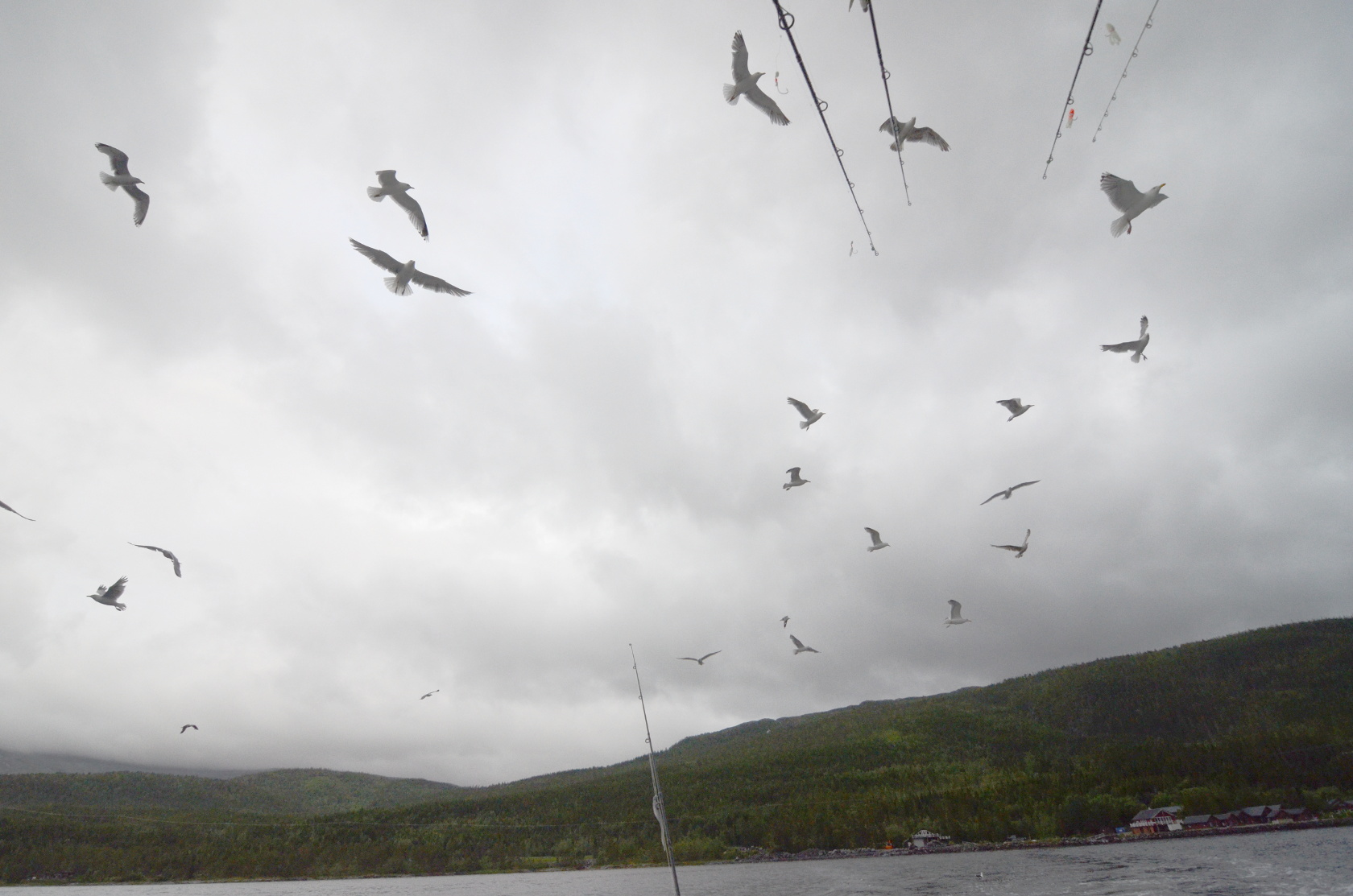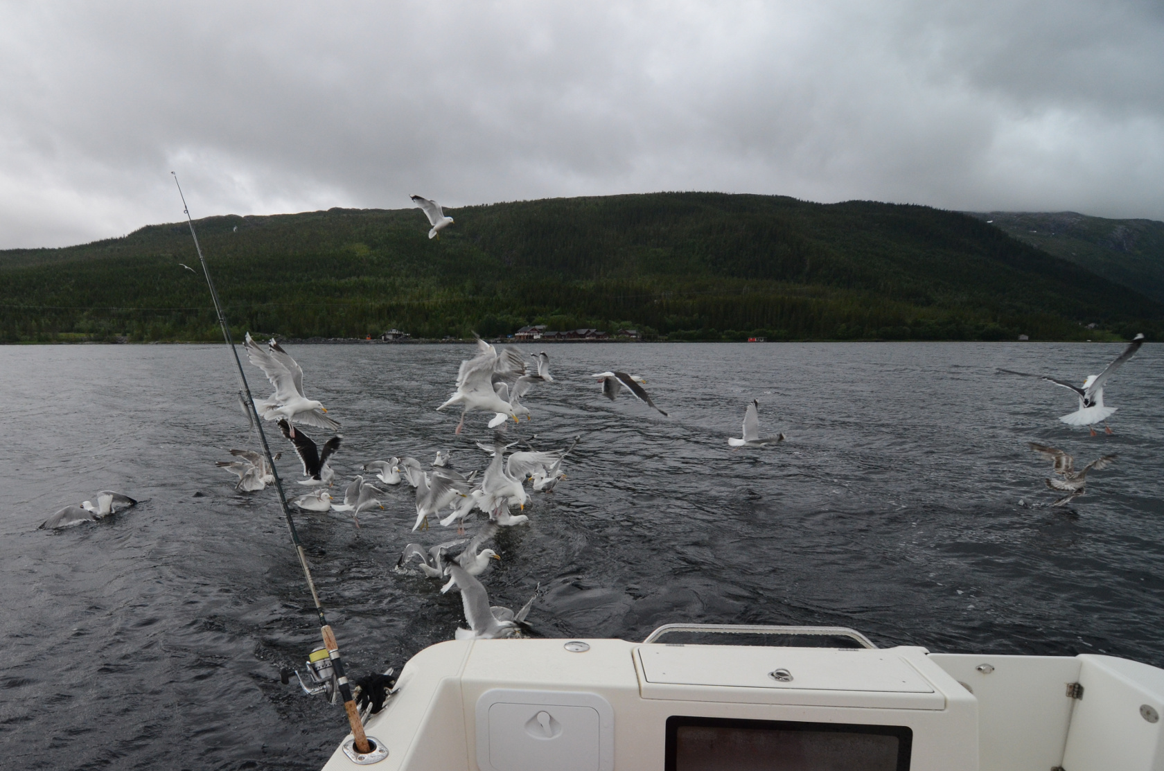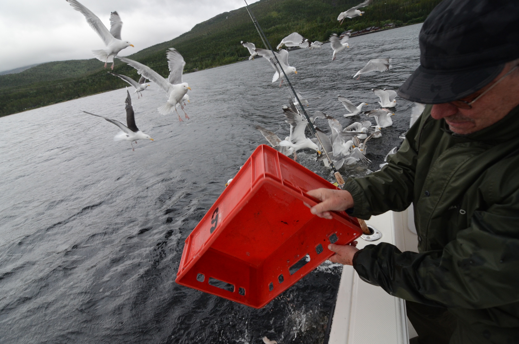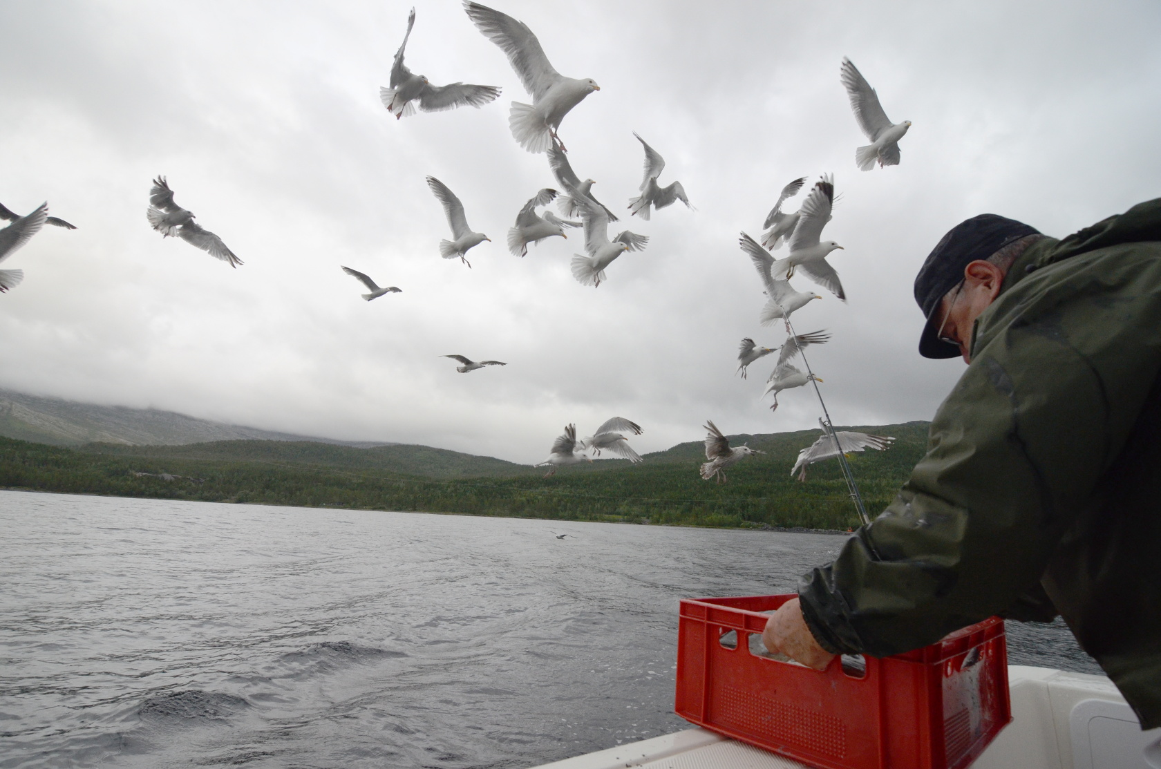 Jede Möwe wollte einen guten Happen erwischen, bevor die Fischabfälle im Fjord versanken.