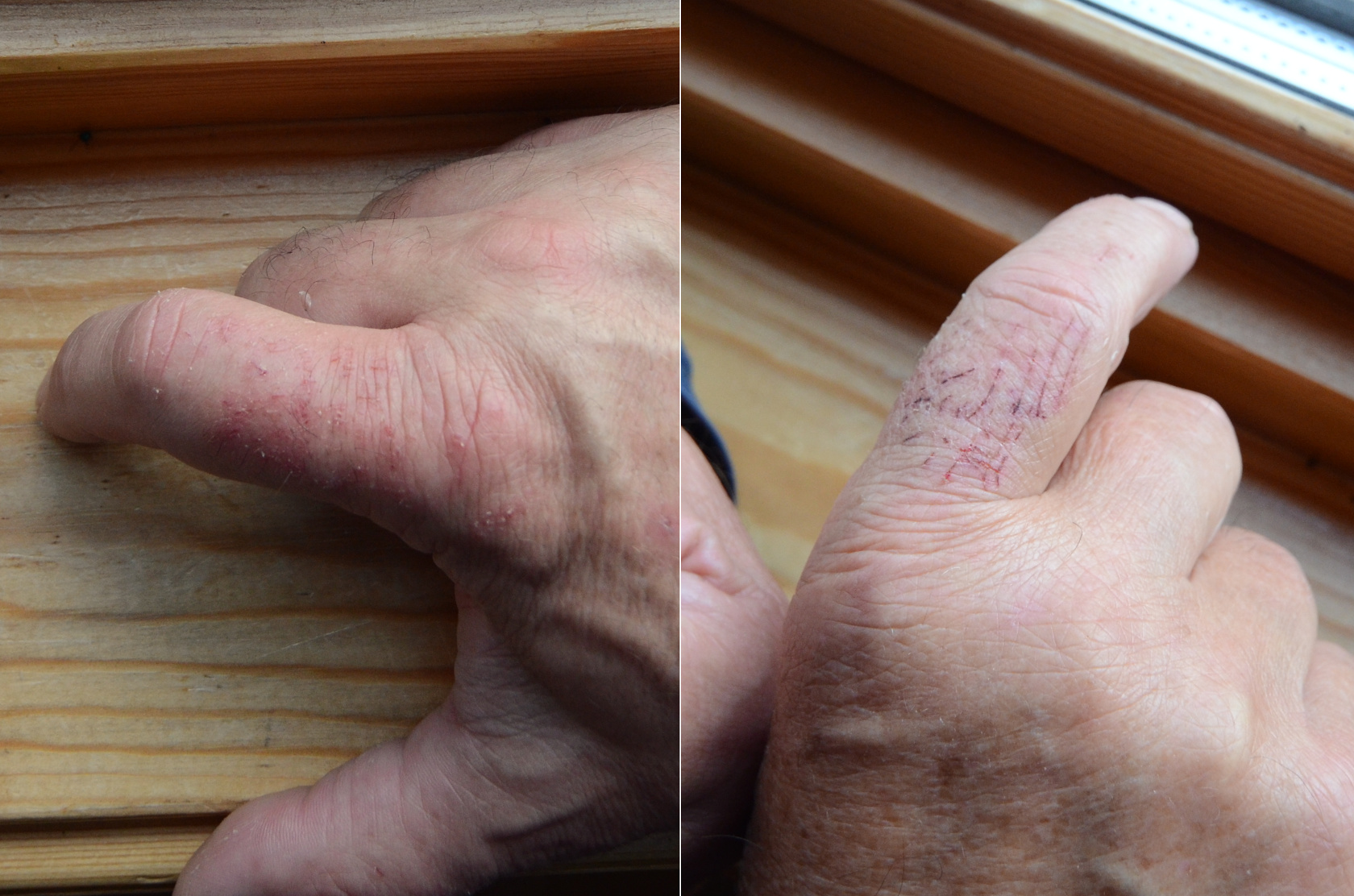 Im nächsten Bild ist zu sehen, welche Verletzungen man an den Händen erleidet, wenn ein Pollack den Köder tief verschluckt und dieser vor dem nächsten Wurf herausoperiert werden muss.