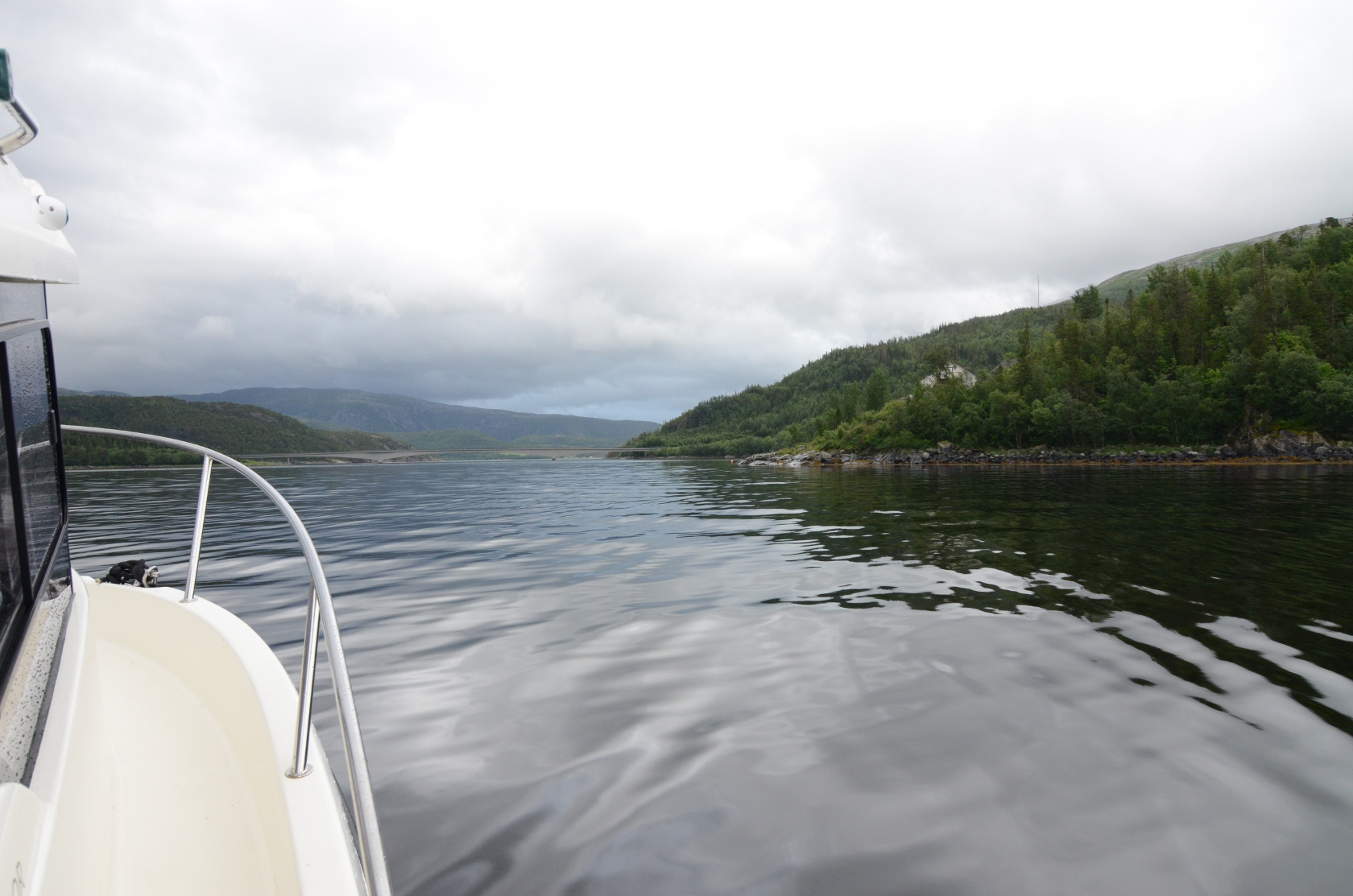 Die Angelstelle unter der Brücke war für mich nicht erfolgreich. Ich habe dort nichts Verwertbares gefangen. Um einen Beweis zu erbringen, dass es viel mehr auf die Person an der Angel und nicht auf den Köder ankam, wechselte ich die Angel mit Wolli. Wolli hatte eine gleich ausgestattete Angel wie ich. Mein Erwartungshaltung war: ich werde nichts fangen und Wolli mit meiner Angel schon. Leider konnte ich den Beweis nicht erbringen, denn Wolli wie auch ich fingen in dieser Zeit Fische, wenn auch zu klein. An meinem Haken hatte ich zuerst einen zu kleinen Seelachs und später noch einen Rotbarsch. Alle gingen in den Fjord zurück.