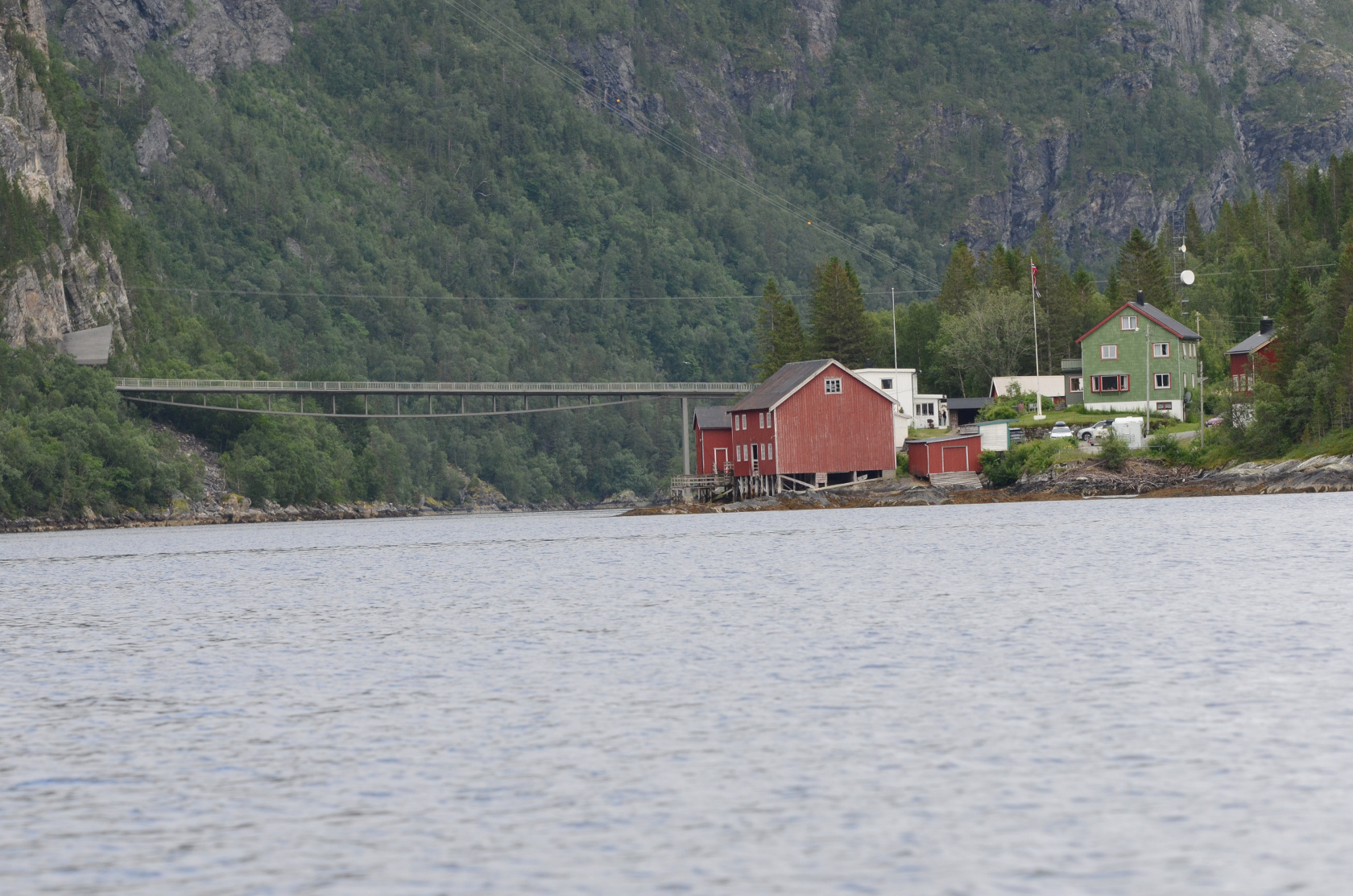 Diese Brücke mündet auf der linken Seite direkt in einen Tunnel. Über diese Brücke muss man fahren, wenn man nach Terråk will.