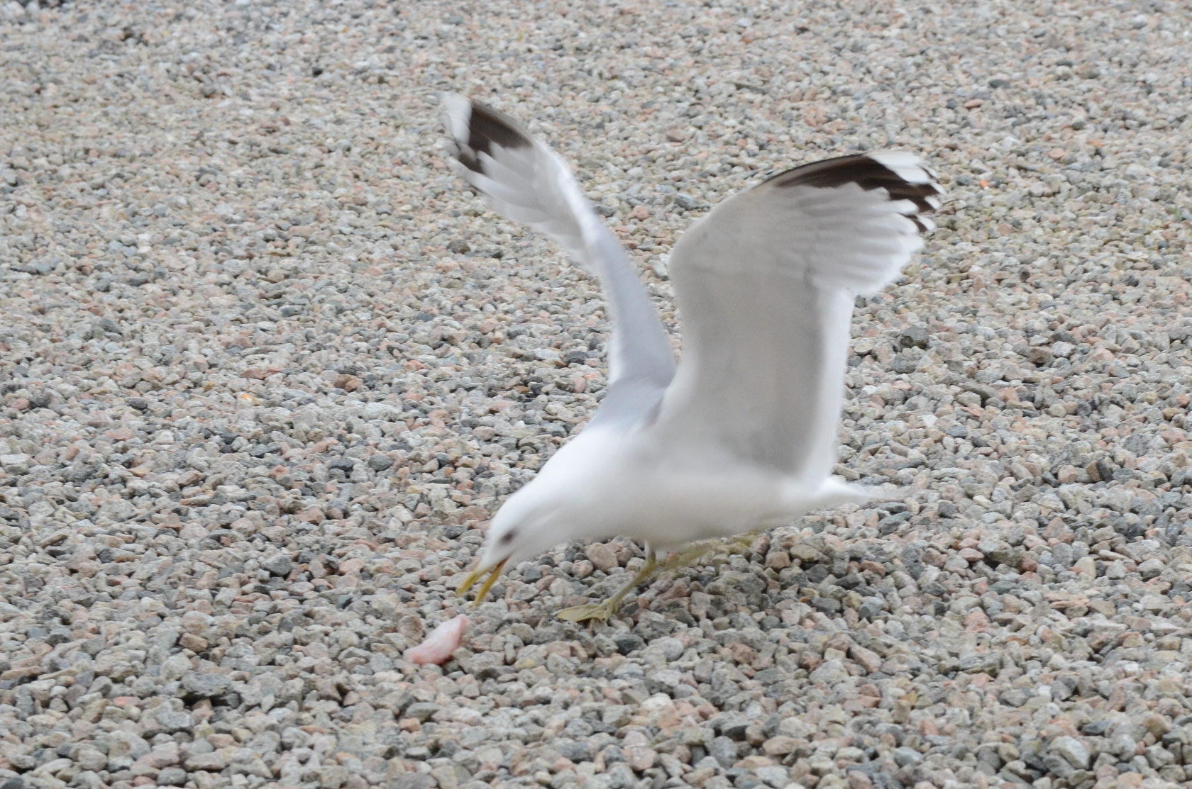 Hin- und wieder gaben wir den Möwen am Filetiertisch ein kleines Stück vom Abfall.
