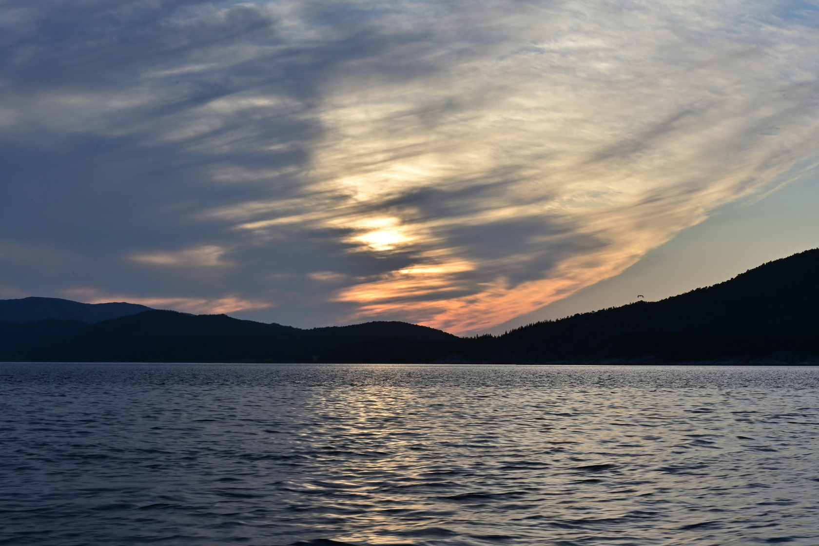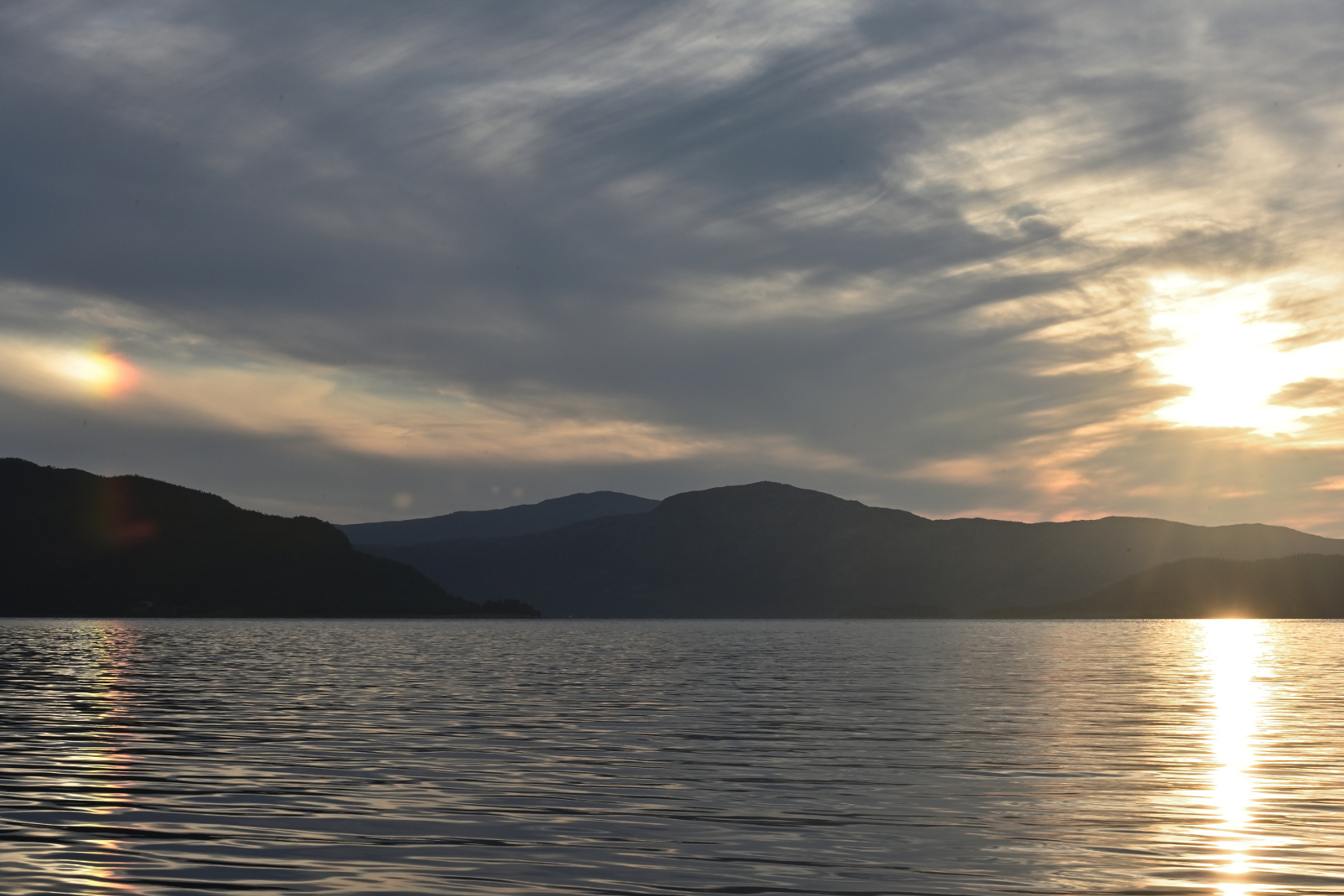 Unsere Kisten wurden voller und voller. Wir konnten die nächsten oder letzten Tage etwas lockerer angehen, da wir nun sicher waren, unser Ziel bzw. das Zoll-Limit zu erreichen. Lockerer hieß auch, dass wir von der "Nachtschicht" auf die "Spätschicht" umstellen wollten. An diesem Tag fuhren wir bereits um 19:30 Uhr raus. Wie jeden Tag mussten wir die Fischabfälle des Vortages entsorgen. Sobald wir ca. 500 Meter vom Hafen entfernt waren, stoppten wir die Fahrt und kippten die Abfälle in den Fjord. Die Möwen schnappten sich die besten Brocken, bevor alles langsam unterging.